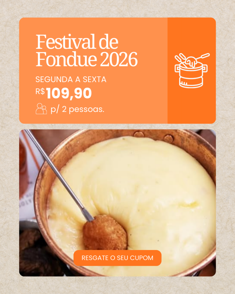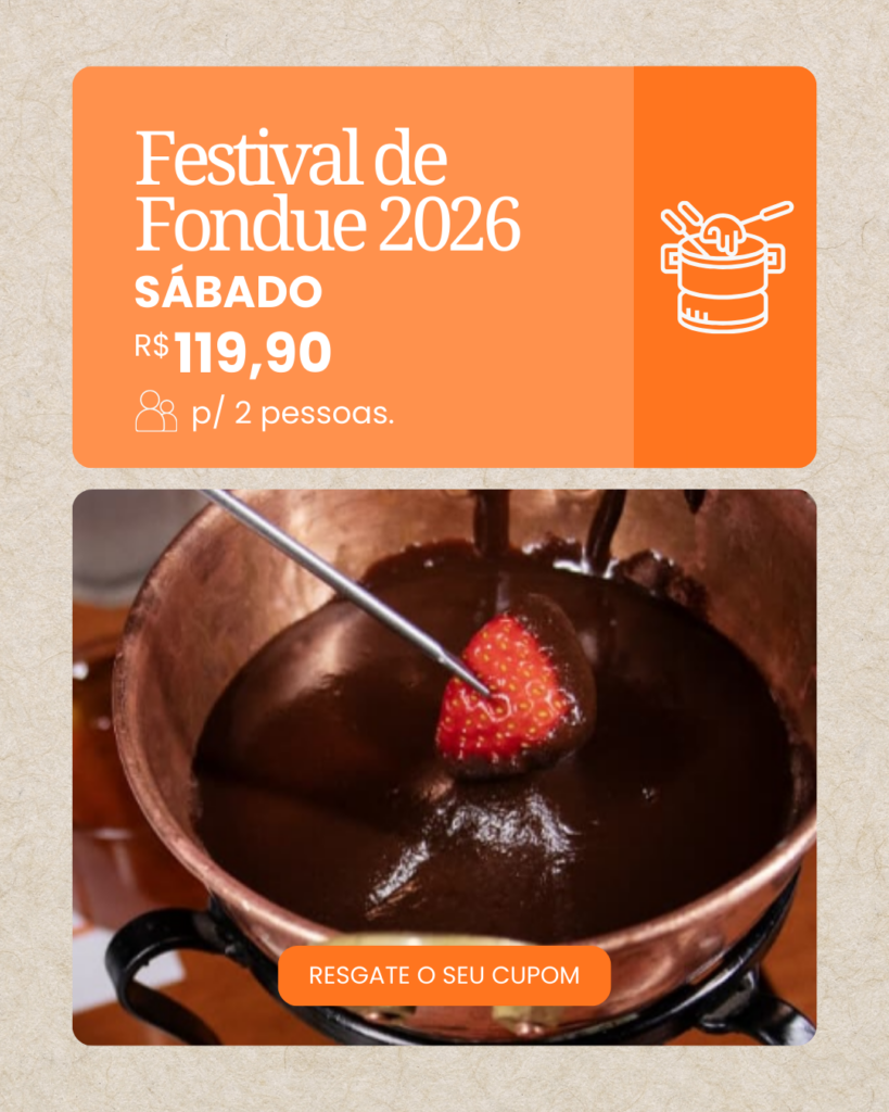 Você poderá se deliciar como o nosso festival de Fondue Salgado e Doce que é um dos três melhores festivais de São Paulo eleito pela Folha de São Paulo.
